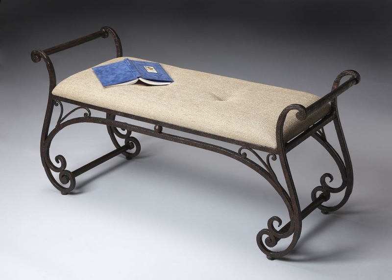 Add texture and elegance to your home with this iron sleigh bench.  Hand-finished metal provides rich contrast to the cotton-covered upholstered cushion seat.  Master crafted with attention to detail, the French Classic flavor fits well in transitional or eclectic settings.