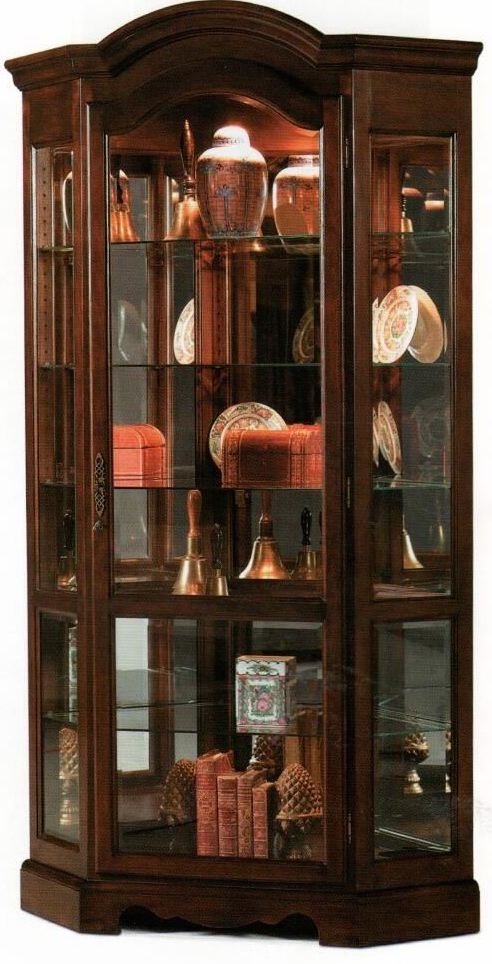 Lighted curio with mirror back and glass shelves. Available in many finishes