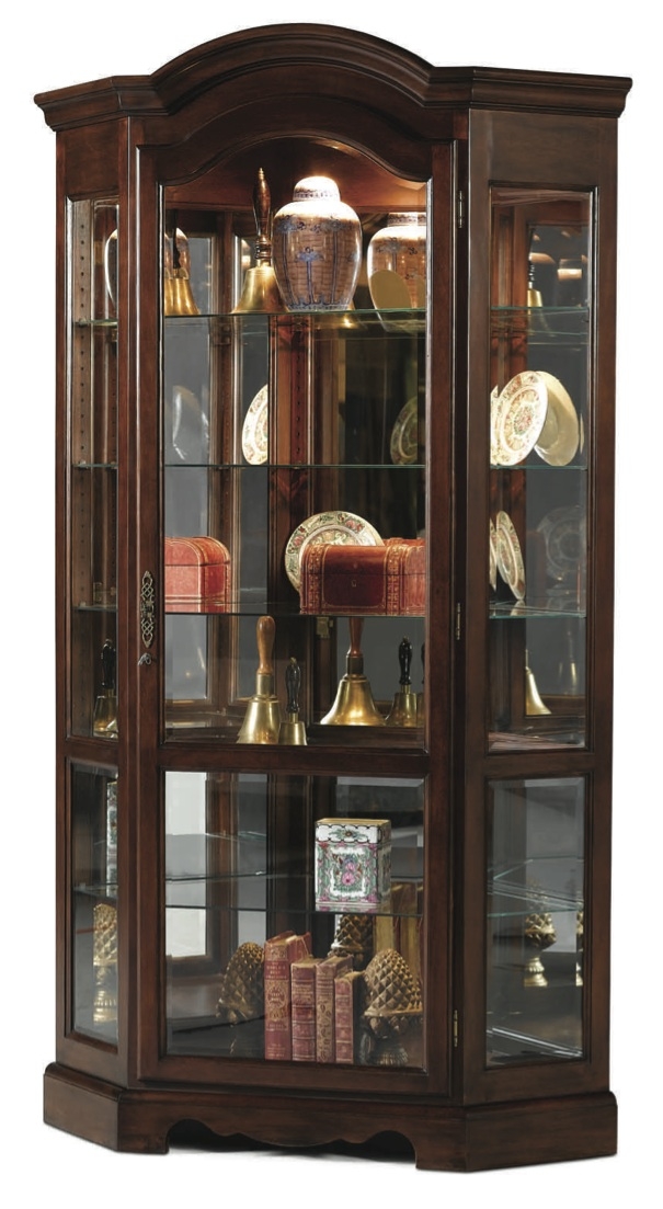 JefferiesCherry corner lighted curio with glass shelves and mirrored back Please login to see pricing!