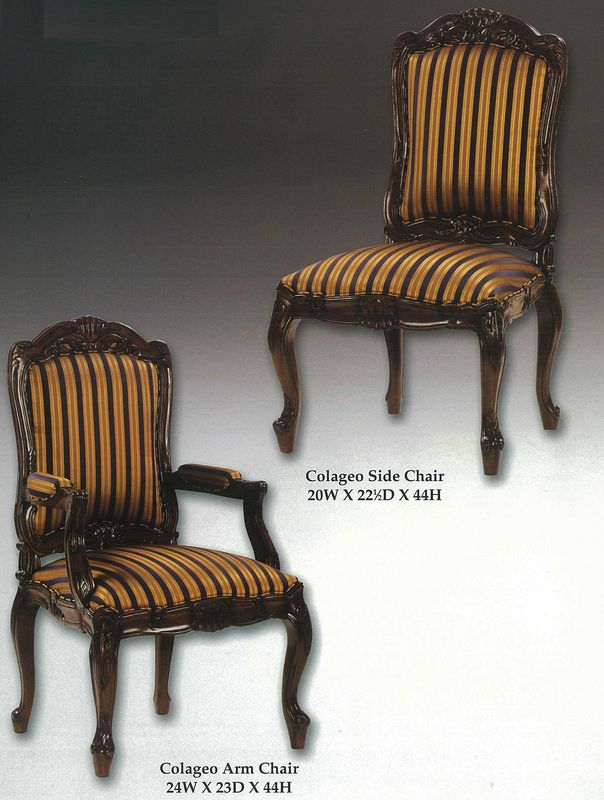 Colageo side chair available in numerous finishes and fabrics. Arm chair also available.