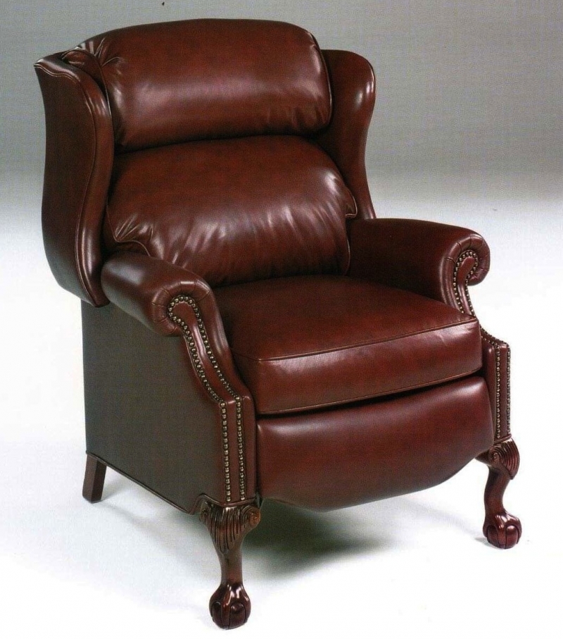 Bustle back wing recliner with ball and claw leg. Available in numerous leathers and fabrics.