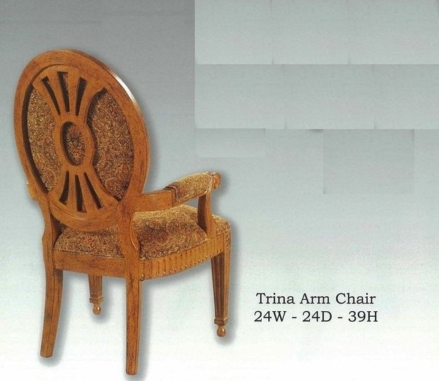 Trina arm chair available in various finishes and fabrics. Available without arms.