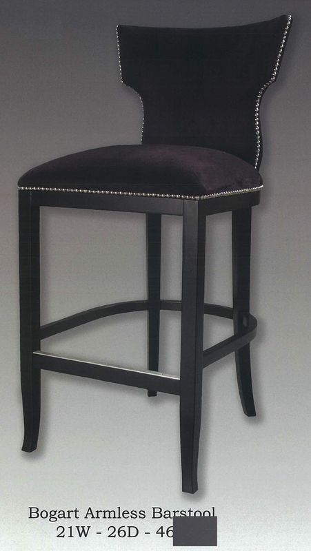 Bogart barstool available in numerous finishes and fabrics. Available with arms.