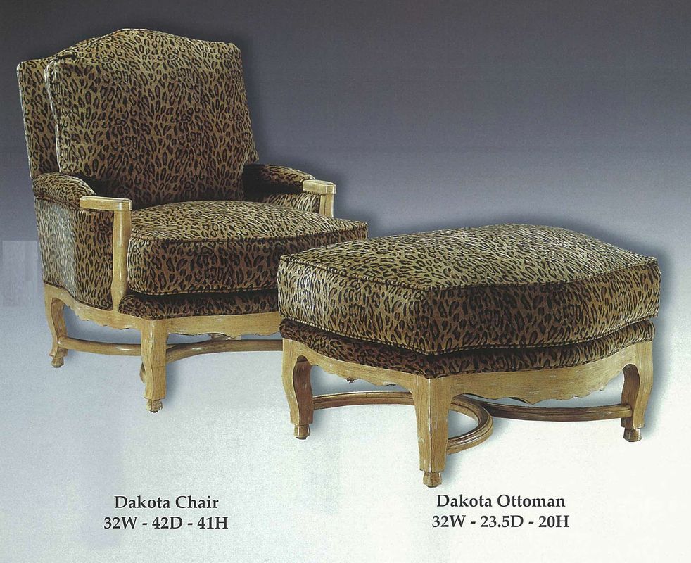 Dakota bergere chair available in various finishes and fabrics. Matching ottoman sold seperately.