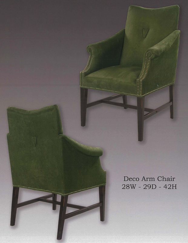 Deco Arm Chair available in various finishes and fabrics. Side chair available.