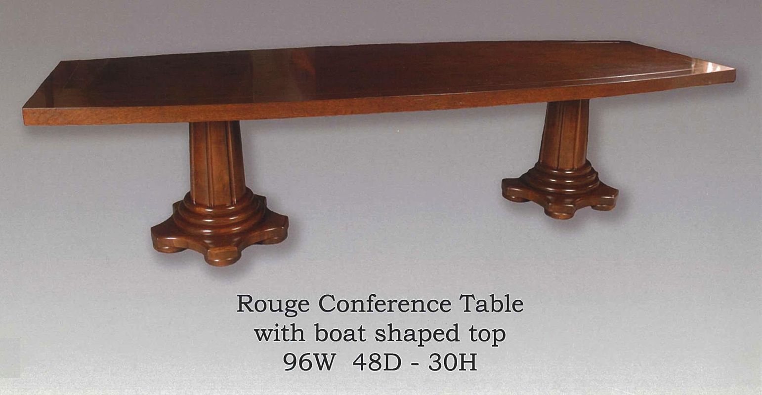 Rouge conference table with boat shaped top. Available in multiple sizes and finishes.