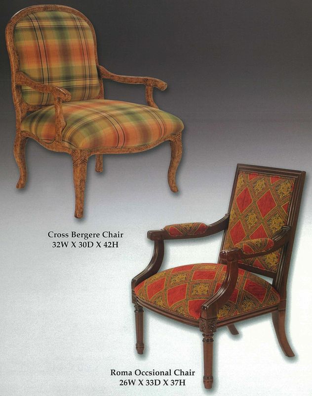 Roma occasional chair or Cross bergere chair available in various finishes and fabrics.