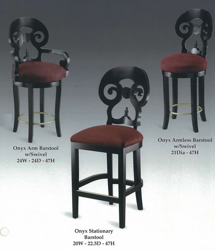 Onyx arm barstool available in various finishes and fabrics. Available without or without arms and/or swivel.