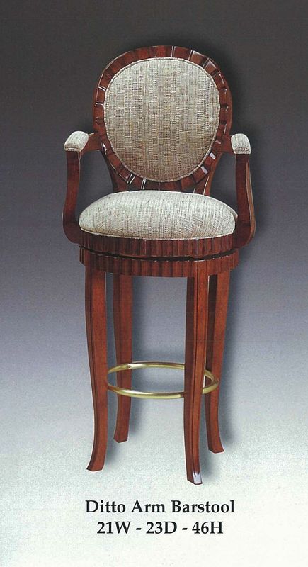 Ditto barstool available in various finishes and fabrics. Available without arms.