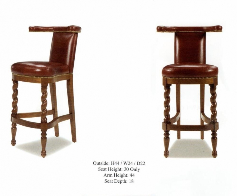Barley twist barstool with Cock fight back. Available in numerous covers and finishes.