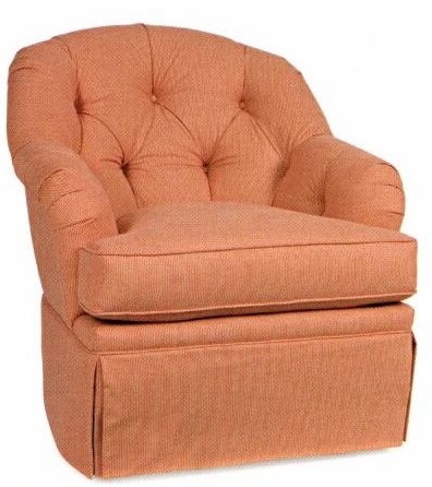 Tufted barrel back arm chair with "T" cushion. Available in multiple finishes and fabrics. Available with swivel.