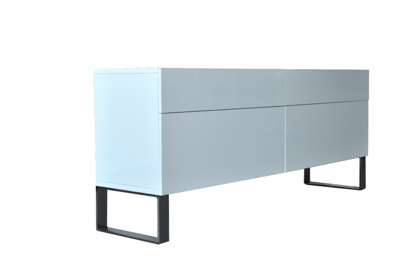 White lacquer and bar stock chrome sideboard. Also available in walnut veneer. 76w x 18d x 31.5h
