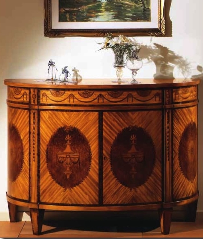 Adam DemiluneDemi-lune cabinet in satin wood and mahogany marquetry inlay. Please login to see pricing!