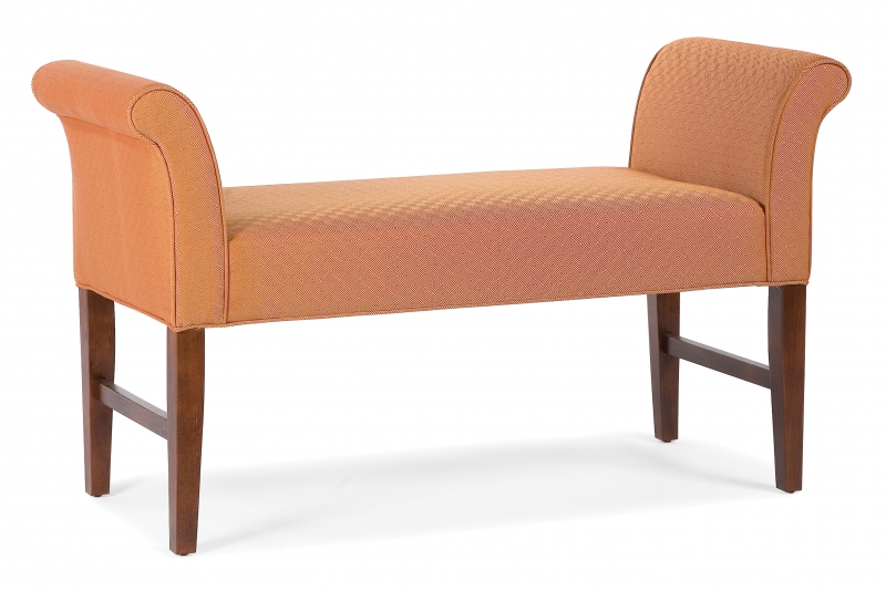 Rolled arm bacless bemch available in numerous fabrics and leathers