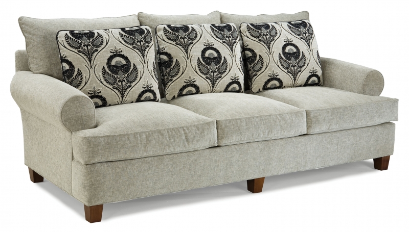 Sofa. Shown with optional contrasting fabric and optional contrasting welt on throw pillows. Loose Back/Loose Seat.