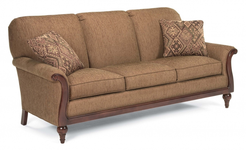 Sofa. Shown with optional contrasting fabric on throw pillows. Tight back, Loose Seat.