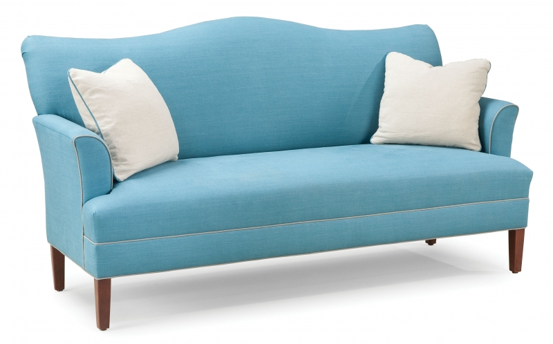 Sofa. Shown with optional contrasting fabric on throw pillows. Also shown with optional all-over contrasting welt.