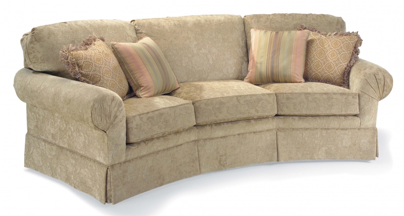 Corner Sofa. Shown with optional contrasting fabric on throw pillows. Also shown with (2) extra 18" pillows with optional decorative fringe. Semi-Attached Back/Loose Seat.