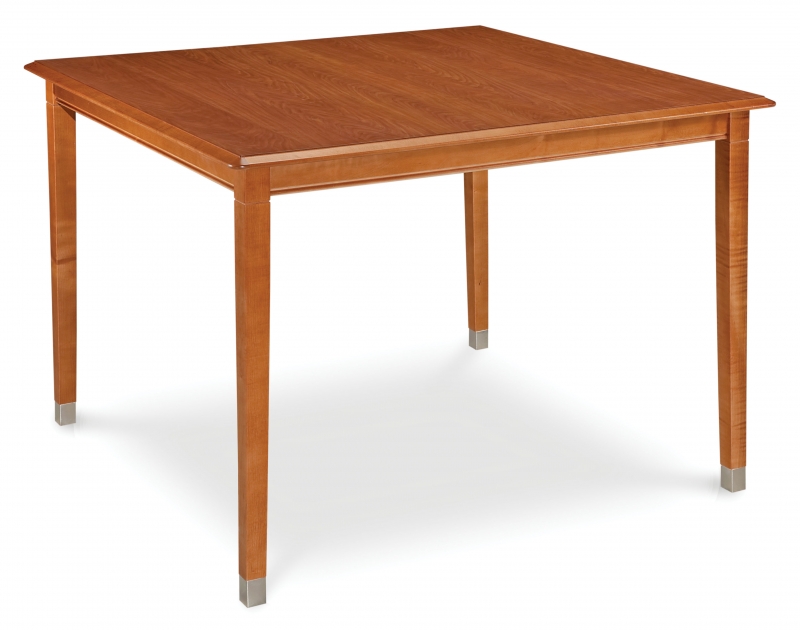 Square Dining Table Shown in Amber finish. Features a laminate top. Available in Amber, Cherry, Golden Wheat, Natural Cherry, Walnut or Windsor finishes only.