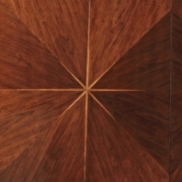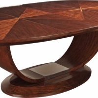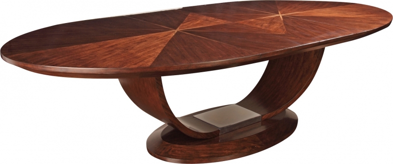 Oval Dining table. W78-114 with two 18" leaves. Gemelina solids with crown walnut veneers and marquetry inlayed stars.