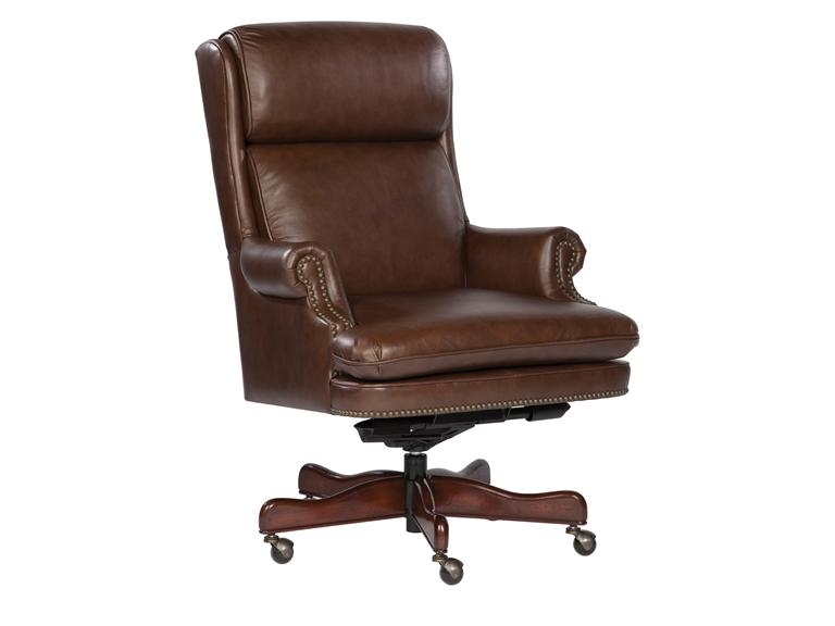 Beautiful genuine leather. Antique brass nailhead trim and Gas lift Knee-tilt mechanism. Available in Black, Coffee, Merlot, or Tan.