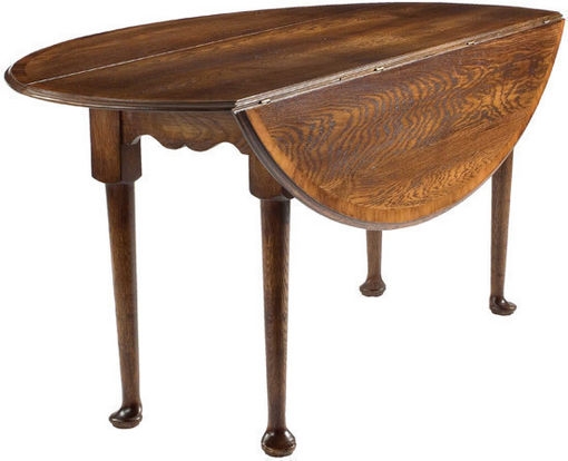 Dropleaf padfoot dining table in oak with yew wood crossbanding